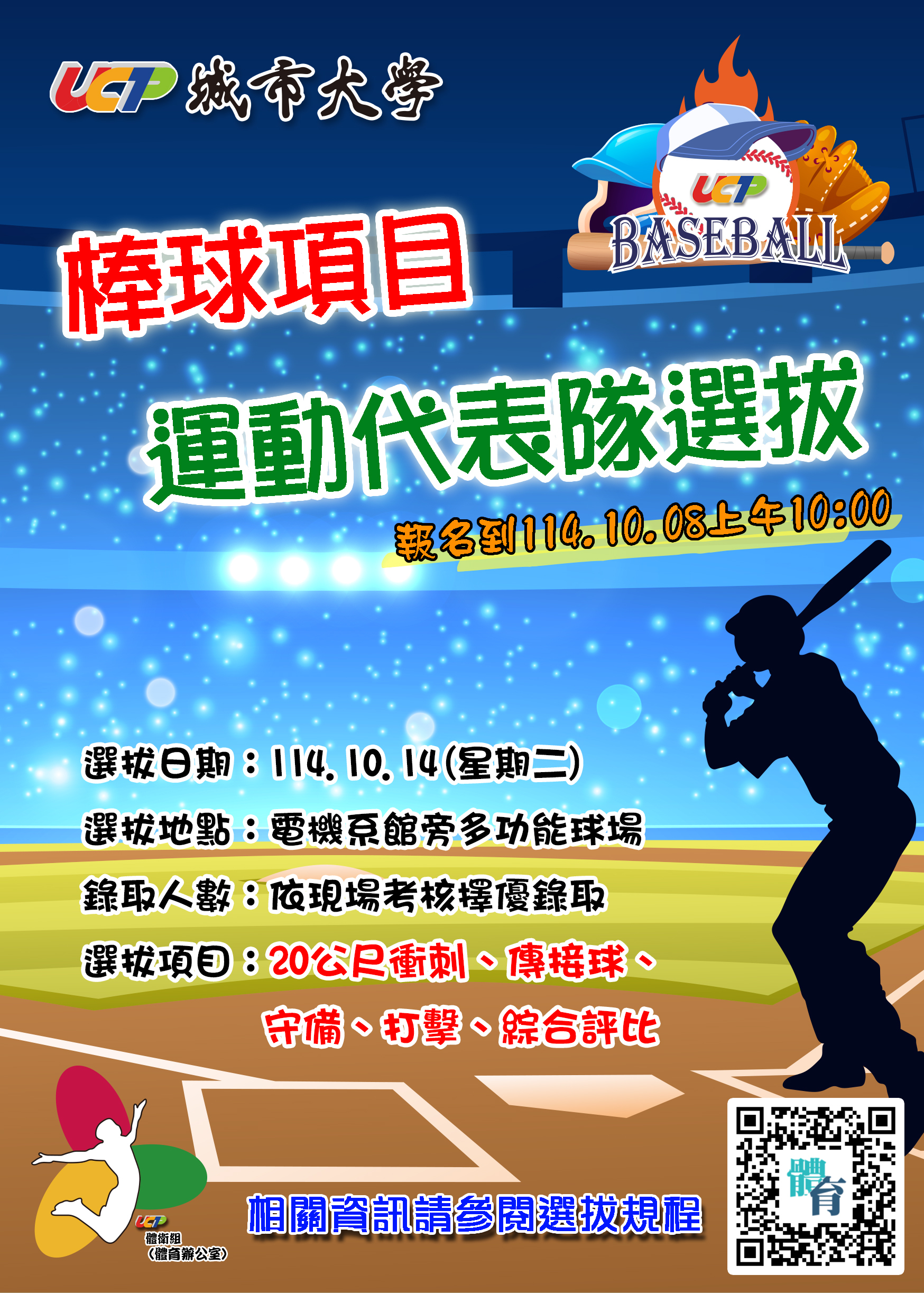 【代表隊選拔】114-1棒球運動代表隊選拔